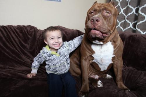 Несмотря на то что многие люди побаиваются питбулей, Халк является очень добрым псом, который всегда радостно встречает гостей.